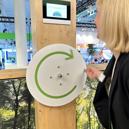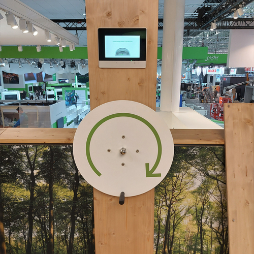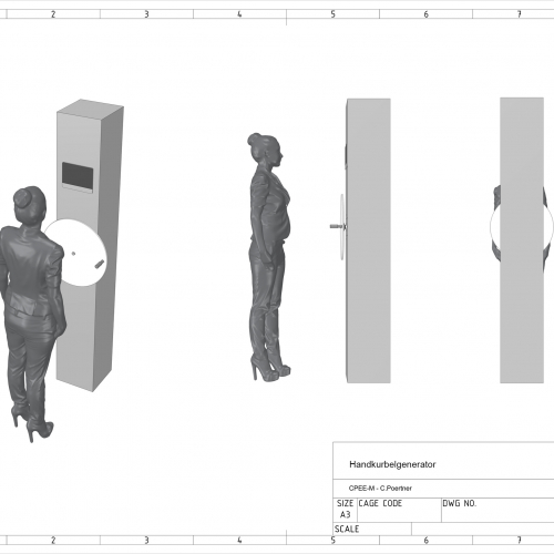 Modell // Handkurbelgenerator Planung / Produktion: 2023 / 2023Funktionsmodell Handkurbelgenerator der Firma WAGO GmbH & Co. KG für den Nachhaltigkeitspfad auf der Hannover Messe (HMI) 2023.